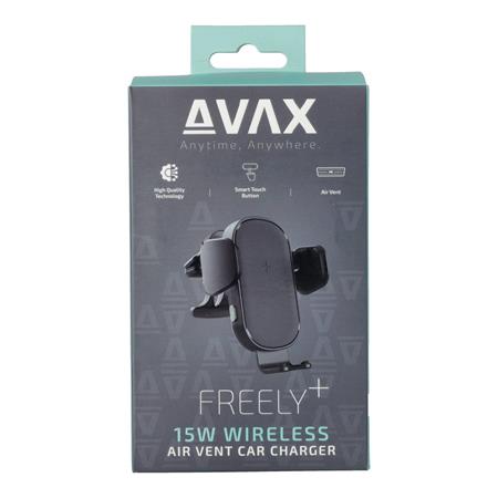 Autós töltő, vezeték nélküli, szellőzőrácsra, AVAX "WH600 Freely+", fekete